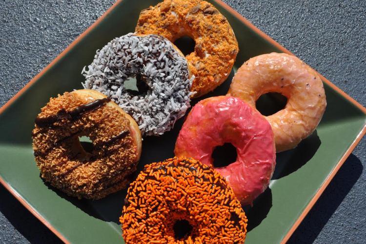 Enough about the chicken! What about the doughnuts? Well…unfortunately I didn’t really have luck with the doughnuts.  Their signature Crème Brûlée doughnut was sold out.  I ended up ordering two glazed doughnuts, one orange blossom with pistachios, one peanut butter and jelly and one berry doughnut (my options were very limited).  I brought the doughnuts over to my friends and to be completely honest, none of them said, “ wow these doughnuts are amazing.”.  They all thought they were mediocre but nothing special.  I would say that the only thing I liked about them was there fluffiness. Everyone at the table agreed that they’ve had better doughnuts before.